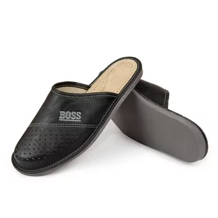 Klasyczne męskie klapki domowe, szare Cholewka pantofli ozdobiona geometrycznym wzorem. Kapcie wykonane ze skóry naturalnej zapewnią ulgę stopom. Klin amortyzuje stopę podczas chodzenia, dając poczucie komfortu i odprężenia. Podeszwa została podklejona antypoślizgowym i wytrzymałym materiałem wysokiej jakości, dzięki temu kapcie są odporne na ścieranie i będą służyć przez długi czas. Specyfikacja: