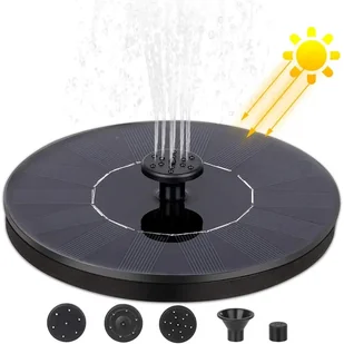 Pływająca fontanna stanowi ciekawy element dekoracyjny oczek wodnych. 6 różnych dysz umożliwia zmianę strumienia wody. Zasilanie słoneczne. Nie wymaga dodatkowej pompy.