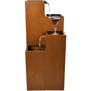 Ta fontanna to wyrazisty element patio lub ogrodu. Cztery proste, pozbawione ozdób kolumny tworzą jedną całość wykonaną ze stali Corten. Woda przepływa z kolumny do kolumny, a przepływ wody jest zapewniony przez zamknięty obieg wody.