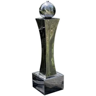 Ta funkcja wodna jest wykonana w całości z wysokiej jakości stali nierdzewnej V2A. Woda przepływa od góry przez otwór w kuli, który jest wyposażony w cztery wodoodporne światła LED, w dół całej powierzchni kuli i przez kwadratowy cokół do prostokątnego zbiornika ze stali nierdzewnej, tworząc nowoczesną atmosferę w swoim otoczeniu.