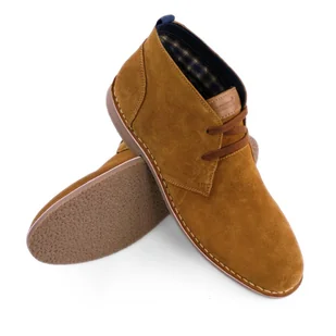 Męskie buty chukka wykonane z naturalnego zamszu w kolorze jasnego brązu. Klasyczny fason za kostkę z minimalistycznym wykończeniem. Buty posiadają trwałą po...