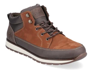 Wysokie buty sportowe męskie marki Rieker. Wykonane ze połączenia skóry naturalnej oraz ekoskóry. Ocieplane polarem. Komfortowa, wkładka żelowa, ocieplana fi...