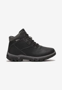 Czarne Ocieplane Botki za Kostkę na Płaskiej Podeszwie z Wycięciami i Przeszyciami Rache