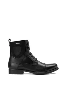 <p><strong>Czarne trzewiki męskie </strong>wykonane z wysokiej jakości <strong>skóry licowej oraz tkaniny </strong>charakteryzują się stylowym designem. Trzewiki posiadają liczne przeszycia na cholewce, które przełamują klasyczny look. </p> <ul> <li>Zamek umieszczony po wewnętrznej stronie cholewki ułatwia zakładanie butów. </li> <li>Ocieplane od wewnątrz w technologii <a href="https://kazar. com/thinsulate"><spa