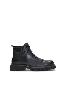 <p><strong>Sznurowane trzewiki męskie</strong> charakteryzują się wysokim komfortom użytkowania, estetycznym wyglądem oraz uniwersalnym stylem. Cholewka za kostkę wykonana jest z wysokiej jakości <strong>skóry licowej </strong>w granatowym kolorze z czarnym cieniowaniem i wstawkami. Ciekawym elementem tego modelu jest górna część cholewki z efektownymi przeszyciami oraz metalowymi uchwytami na sznurówki. Prezentowane trzewiki doskonale podkreślą męski char