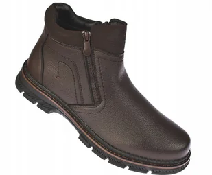 Sztyblety męskie botki B-4-0754 brąz ocieplane kozaki zimowe na suwak r. 45