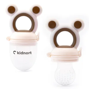 Gryzak 2w1 do podawania jedzenia beżowy silikonowy od 4 miesięcy