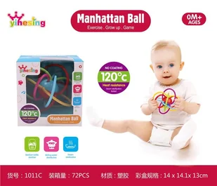 Gryzak sensoryczny. Grzechotka dla najmłodszych wykonana z plastiku i silikonu w kształcie kuli