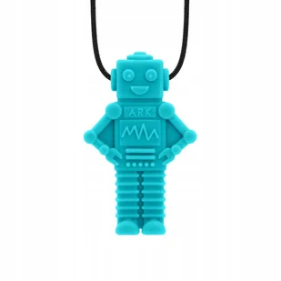 ARK's RoboChew™ Sensory Chew Necklace - Turkusowy - Miękki Gryzak w kształcie Robota w formie naszyjnika. Bardzo wygodna i bezpieczna alternatywa w stosunku do gryzienia kredek, pisaków czy własnych palców. Szczególnie polecane dla dzieci tzw "przeżuwaczy", którym pozwala odreagować różnego rodzaju stresy, dając możliwość skupienia np. na pracy domowej lub innych zajęciach wymagających zwiększonej uwagi. Wymiary: Wysokość: 6,3 cm. Szerokość u podstawy: