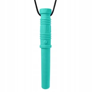 ARK'S BITE SABER® SENSORY CHEWELRY - Turkusowy - Miękki ARK's Bite Saber® to bezpieczny i super fajny naszyjnik dla dzieci i dorosłych, którzy na co dzień czują potrzebę żucia. Gryzak ma długość 9,7cm i około 1 cm średnicy w węższej części, ma odpowiedni rozmiar, aby dotrzeć do tylnych zębów trzonowych, którymi żucie jest najbardziej pożądane przez użytkowników . Bardzo wygodna i bezpieczna alternatywa w stosunku do gryzienia kredek, pisaków czy własnych palców. Szczególnie polecane dla dzieci tzw "przeżuwaczy", którym pozwala odreagować różnego rodzaju stresy dając możliwość skupienia np. na pracy domowej lub innych zajęciach wymagających zwiększonej uwagi.