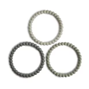 Mushie - 3 silikonowe bransoletki gryzaki PEARL Green Tea Cool Gray Sea Salt