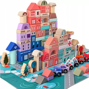 Drewniane Klocki Edukacyjne Zestaw Miasto 115 El