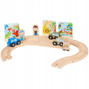 Drewniany 22-elementowy zestaw torów, samochodzików, figurek do gry i dekoracji z pewnością zachwyci wszystkie małe dzieci. Konstrukcja toru jest bardzo prosta, nawet mniejsze dzieci mogą go zbudować.