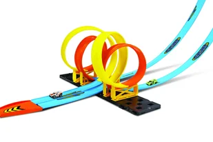 - tor z 2 podwójnymi pętlami i wyrzutnią - 2 autka die-cast do urządzania wyścigów Maksymalne wymiary toru po rozłożeniu: