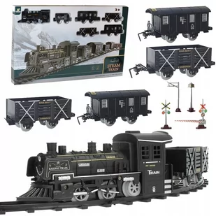 POCIĄG LOKOMOTYWA CIUCHCIA TORY + 5 WAGONÓW DUŻY ZESTAW - DYM i DŹWIĘKI
