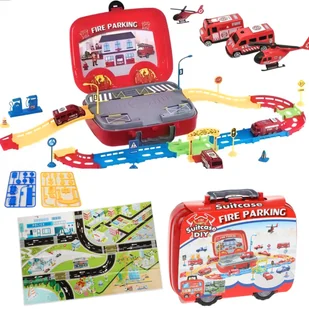Straż Pożarna Zestaw Walizka Helikopter Pojazdy Parking Znaki Drogowe 44El