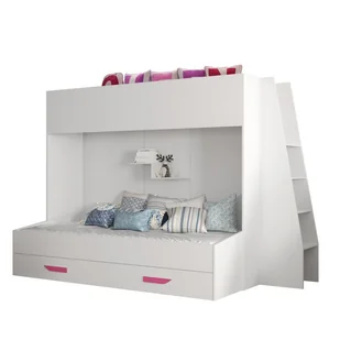 Łóżko piętrowe Antresola PARTY 17 biały + biały + różowy - Abiks