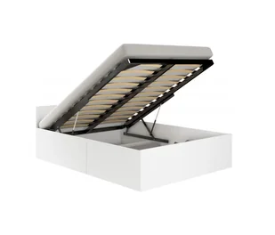 Proste łóżko ze stelażem Amato białe 120x200cm Łóżko Amato stworzone zostało jako wyposażenie niewielkiej sypialni lub pokoju młodzieżowego. To stabilny i wytrzymały mebel wykonany z wysokiej jakości płyty meblowej, zaopatrzony w podnoszony stelaż z płaskich, odpowiednio uformowanych brzozowych listew. Łóżko Amato posiada również obszerny, funkcjonalny pojemnik na pościel, który sprzyja dobremu zagospodarowaniu przestrzeni w pomieszczeniu. Dzięki niemu mebel będzie służyć nie tylko do spania, ale też jako miejsce na przechowywanie poduszek, kołdry czy ciepłych koców. Wystarczy unieść drewniany stelaż, co dzięki sprawnie działającym gazowym siłownikom zrobimy dosłownie jedną ręką, by mieścić zbędne rzeczy.
