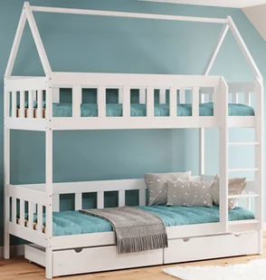 Zainwestuj w wysokiej jakości łóżko piętrowe Gigi 4X marki Elior idealne do spania i zabawy. Meble wyśnione przez Twoje dzieci Łóżko Gigi 4X to mocna drewniana konstrukcja w kształcie prawdziwego domku. Dzieci kochają takie rozwiązania. Zachęć swoje maluchy do spania we własnym pokoju tym komfortowym i zaprojektowanym specjalnie dla nich meblem, który wytrzyma wszystkie dziecięce zabawy. W komplecie z łóżkiem otrzymasz dwa wygodne materace, tak by Twoje dzieci mogły od razu po złożeniu korzystać z nowego posłania.