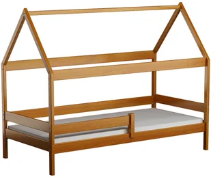 Wyglądem przypomina prawdziwy domek, a wykonanie z naturalnego drewna sosnowego sprawia, iż jest bezpiecznym meblem dla Twojego dziecka. Wyposażono je w praktyczną barierkę, która zapobiegnie spadaniu Twojego malucha z posłania. W komplecie znajduje się też mocny drewniany stelaż oraz piankowy materac dobrany pod wymiar łóżka. Fantastyczna konstrukcja mebla pozwala na dowolne ozdobienie go przez zawieszenie światełek czy innych dodatków, które spodobają się Twojemu dziecku. Wyobraź sobie uśmiech na twarzy Twojego malucha i Twój spokój o jego komfortowy sen.