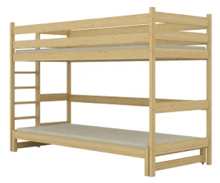 168/188/208 cm w zależności od rozmiaru wysokość: 175 cm wysokość do krawędzi górnego spania 132 cm wysokość do krawędzi dolnego spania 13 cm wysokość dolnego spania 23 cm wysokość barierki 32 cm odległość między szczebelkami barierki 7 cm odległość między szczebelkami drabinki 21 cm długość powierzchni spania: 160/180/200 cm w zależności od rozmiaru szerokość powierzchni spania: 80/90 cm w zależności od rozmiaru maksymalne obciążenie łóżka do 100 kg Najważniejsze Informacje: Gwarancja: 10 lat (inni producenci oferują maksymalnie 24 miesiące gwarancji. Tylko u nas otrzymujesz pełną jakość potwierdzoną aż 10-letnią gwarancją).