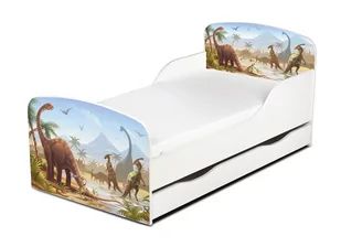 Wytrzymałe i starannie wykończone łóżko z dinozaurami wykonane zostało z płyty meblarskiej o grubości 18 mm. Łóżeczko z nadrukiem nada bajkowego wyglądu i świetnie wkomponuje się do sypialni małego miłośnika świata dinozaurów. Kolorowy wzór/motyw wykonany techniką druku UV. Nadruk jest wysokiej jakości, wytrzymały i odporny na działanie czynników atmosferycznych (woda, wilgoć, temperatura itp). ZESTAW ZAWIERA: