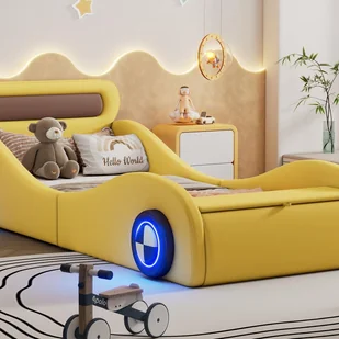 Nie tylko to łóżko ma fajny styl, ale jest również wyposażone w cztery podświetlane koła, które sprawią, że Twoje dziecko poczuje się, jakby wirowało w ogromnym wszechświecie.