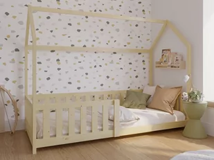 Łóżeczko Domek D7 w rozmiarze 80x160 cm ze stelażem i barierką w kolorze naturalnej sosny - Spełnienie Marzeń Twojego Dziecka Chcesz przekształcić pokój Twojego dziecka w prawdziwą krainę bajki? Odkryj niezwykłe łóżko Domek D7, które spełni marzenia zarówno malucha, jak i rodzica. Stworzone z myślą o bezpieczeństwie, komforcie i pięknym designie, to łóżko przemieni każdy wieczór w niezapomnianą przygodę. Łóżko dziecięce Domek D7 Drewniana Konstrukcja - Wykonane z solidnego drewna sosnowego, łóżeczko gwarantuje trwałość i stabilność na wiele lat. Jego bryła nie tylko stanowi piękną dekorację w pokoju dziecięcym, ale również zapewnia komfortowy i zdrowy sen dla Twojego malucha. Bezpieczeństwo przede wszystkim - Dbając o spokojny sen i bezpieczeństwo Twojego dziecka, łóżko zostało wyposażone w płotek umieszczony na każdym boku łóżeczka.