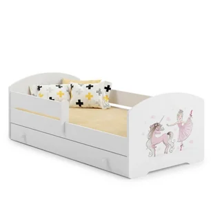Łóżko dziecięce LUK z szufladą i barierką 80x160 Dziewczynka ze skrzydełkami