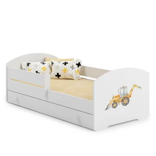 Łóżko dziecięce LUK z szufladą i barierką 160x80 Żółta koparka