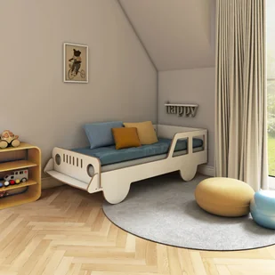 Łóżko samochód dla chłopca i dziewczynki!Łóżeczko jest dostępne w rozmiarach 70x140, 80x160 i 80x180, dzięki czemu jest odpowiednie dla dzieci w różnym wieku. Nasze łóżko dziecięce w kształcie samochodu to spełnienie dziecięcych marzeń!Stelaż wykonany jest z tego samego materiału, co łóżeczko. Stabilna konstrukcja łóżka pozwala na utrzymanie ciężaru do 120 kg. Wszystkie krawędzie łóżka są gładkie, dzięki czemu jest ono całkowicie bezpieczne dla Twojego malucha. Łóżko wyprodukowane w Polsce.