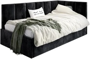Łóżko młodzieżowe AURA 100x200 czarne z tapicerowanym panelem L i pojemnikiem na pościel MKPOL