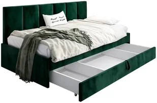 Łóżko młodzieżowe SORA 2 100x200 zielone z tapicerowanym panelem i szufladą MKPOL