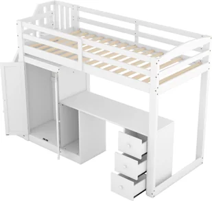 Cechy produktu: Mnóstwo miejsca do przechowywania: to łóżko na poddaszu składa się z kilku części - łóżka, biurka, szafy, trzech szuflad, otwartej szafki do przechowywania, a nawet schodów do przechowywania!Stylowy design: to łóżko na poddaszu oferuje stylowe i wygodne miejsce do spania, nauki i pracy. Bezpieczeństwo i stabilność: