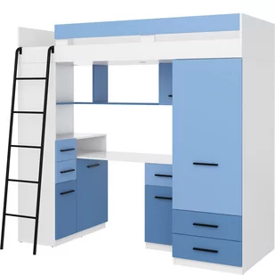 Stelaż płytowy z otworami wentylacyjnymi; Rodzaj łóżka: łóżko piętrowe; Informacje dodatkowe: ze stelażem; Cechy dodatkowe: z biurkiem, z szafą; Liczba miejsc do spania: 1;