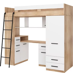 Stelaż płytowy z otworami wentylacyjnymi; Rodzaj łóżka: łóżko piętrowe; Informacje dodatkowe: ze stelażem; Cechy dodatkowe: z biurkiem, z szafą; Liczba miejsc do spania: 1;