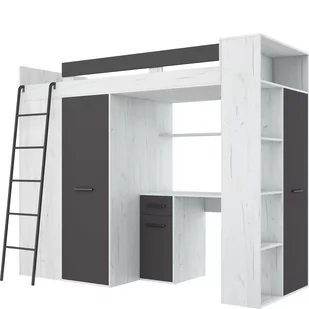 Stelaż płytowy z otworami wentylacyjnymi; Rodzaj łóżka: łóżko piętrowe; Informacje dodatkowe: ze stelażem; Cechy dodatkowe: z biurkiem, z szafą; Liczba miejsc do spania: 1;