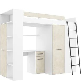 Stelaż płytowy z otworami wentylacyjnymi; Rodzaj łóżka: łóżko piętrowe; Informacje dodatkowe: ze stelażem; Cechy dodatkowe: z biurkiem, z szafą; Liczba miejsc do spania: 1;