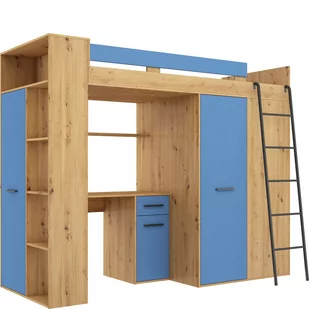 31. 6; Wysokość zanóżka (cm): 31. 6; Wymiary pasującego materaca: 90 x 200; Wybarwienie frontu: Niebieski; Wybarwienie korpusu: Dąb Artisan / Niebieski; Materiał frontu:
