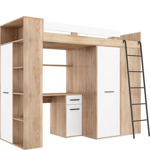 Stelaż płytowy z otworami wentylacyjnymi; Rodzaj łóżka: łóżko piętrowe; Informacje dodatkowe: ze stelażem; Cechy dodatkowe: z biurkiem, z szafą; Liczba miejsc do spania: 1;