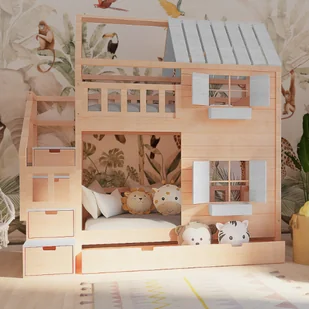 Łóżko piętrowe ze sklejki domek z widokiem