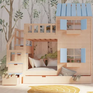 Łóżko piętrowe domek Drewniany Raj ze schodami