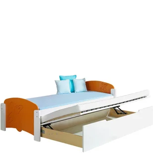Łóżko podwójne z pojemnikiem 90 x 200 + 90 x 197 MAŁGOSIA 2 Niezwykle nowoczesne łóżko podwójne Małgosia 2 świetnie sprawdzi się w pokoju dziecięcym. Ciekawy wzór z pewnością przykuje uwagę Twojego dziecka, a możliwość wyboru kolorystyki zainspiruje do stworzenia wyjątkowych aranżacji. Ponadto łóżko sprawdza się doskonale pod względem praktycznym. Dolna część wysuwana jest na prowadnicy z ogranicznikiem, co zapewnia bezpieczeństwo i komfort użytkowania. Łóżko posiada także pojemną szufladę z podnośnikiem materaca, która może być wykorzystana jako pojemnik na pościel lub jako schowek.