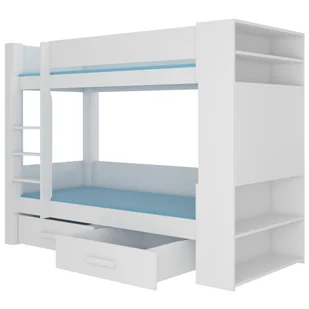 Zaimponuj nie tylko swoim dzieciom, ale każdemu, kto odwiedzi Twój pokój dziecięcy, nowoczesnością i wielofunkcyjnością łóżka piętrowego ze schowkiem GUINEA 80x180 cm w ponadczasowym białym designie. Łóżko zapewni nie tylko pełnowartościowe miejsce do spania, komfort i wygodę niezakłóconego snu dla dwóch osób, ale przede wszystkim dużo miejsca do przechowywania w postaci dwóch szuflad na dole łóżka lub otwartej półki z boku. Wykonana jest z litego drewna sosnowego w połączeniu z trwałą laminowaną płytą DTD o grubości 18 mm, wykończoną obrzeżem ABS odpornym na uszkodzenia mechaniczne. Ruszt toczny, który jest częścią łóżka, wykonany jest z drewna sosnowego o grubości 2 cm. Kolor łóżka jest nanoszony natryskowo, a dzięki trzem warstwom lakieru jest ono odporne na uszkodzenia mechaniczne i wszelkiego rodzaju zabrudzenia.