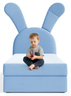 Konstrukcja Kikori została zaprojektowana z myślą o bezpieczeństwie i codziennym komforcie dziecka. Miękkie krawędzie, stabilna podstawa i wysokiej jakości tkanina odporna na przetarcia sprawiają, że mebel posłuży przez lata, zachowując swój urok i funkcjonalność. Dlaczego łóżko Kikori to najlepszy wybór? przyjazna, bajkowa forma z zagłówkiem w kształcie króliczych uszu, miękkie, tapicerowane obicie z delikatnej tkaniny velvet, solidny stelaż z mechanizmem podnoszenia, pojemny schowek na pościel, zabawki lub akcesoria (prosimy o określenie strony otwierania) , bezpieczna, stabilna konstrukcja stworzona z myślą o dzieciach. Materiały i wykonanie Tkanina obiciowa – gęsta i aksamitna tkanina obiciowa typu velvet posiadająca bardzo dobrą odporność na ścieranie (do 100 000 cykli - test Martindale). Siłowniki gazowe – profesjonalne mechanizmy gwarantujące lekkie i bezpieczne otwieranie pojemnika.