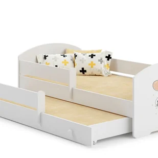 Praktyczne rozwiązanie do pokoju dziecięcego To łóżko dziecięce z wysuwanym drugim łóżkiem to idealny wybór dla tych, którzy szukają funkcjonalności, stylu i komfortu w jednym meblu. Dolna szuflada przekształca się w dodatkowe miejsce do spania – idealne dla rodzeństwa lub gości. Klasyczny, neutralny design doskonale pasuje zarówno do pokoju chłopca, jak i dziewczynki. Bezpieczeństwo i komfort o każdej porze Zaprojektowane z myślą o najmłodszych – łóżko posiada zdejmowaną barierkę zabezpieczającą przed wypadnięciem. Zarówno dolne łóżko, jak i barierkę można zamontować po lewej lub prawej stronie – pełna elastyczność w aranżacji.