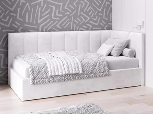 Łóżko tapicerowane młodzieżowe Tom w rozmiarze 90x200 - Styl, komfort i funkcjonalność w jednym. Wprowadź do swojej sypialni nutę wyrafinowanej elegancji i maksymalnej wygody dzięki wyjątkowemu łóżku tapicerowanemu typu tapczan. To nie tylko funkcjonalny mebel, ale również wyraz stylu i dobrego gustu. Łóżko zostało starannie obite ekskluzywną tkaniną Velvet, która zachwyca swoim aksamitnym wykończeniem – jest niezwykle przyjemna w dotyku i pięknie odbija światło, nadając wnętrzu subtelny blask. Dzięki eleganckiej formie i uniwersalnej kolorystyce, łóżko idealnie wpisuje się w aranżacje sypialni utrzymanych w stylu glamour, klasycznym, jak i nowoczesnym.