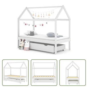 Łóżko dziecięce z szufladą białe sosna 80x160 cmTo wykonane z litego drewna łóżko dziecięce z szufladą jest praktycznym i dekoracyjnym dodatkiem do każdego pokoju dziecięcego. Drewniane łóżko dla dzieci jest wyposażone w ramę łóżka w stylu domku na drzewie, do której można przymocować zasłony. Dzięki temu łóżko może zapewnić dzieciom więcej prywatności. Dzięki pasującym akcesoriom może być również jako domek do zabawy. Wykonane z litego drewna sosnowego łóżko jest niezwykle stabilne i trwałe.