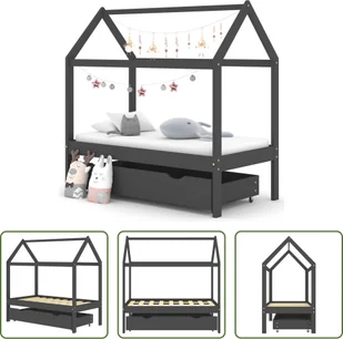Łóżko dziecięce z szufladą ciemnoszare z litego drewna sosnowego 70x140 cmTo drewniane łóżko dziecięce z szufladą jest praktycznym i dekoracyjnym dodatkiem do każdego pokoju dziecięcego. Łóżko ma inteligentnie zaprojektowaną ramę w stylu domku na drzewie. Można na nim zawiesić zasłony, aby zapewnić dziecku prywatność. Łóżko może być również używane jako kącik do czytania lub domek do zabawy. Wykonana z litego drewna sosnowego rama łóżka jest niezwykle stabilna i trwała.