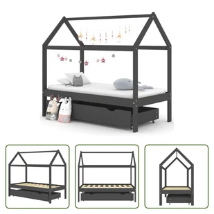 Łóżko dziecięce z szufladą ciemnoszare z litego drewna sosnowego 80x160 cmTo drewniane łóżko dziecięce z szufladą jest praktycznym i dekoracyjnym dodatkiem do każdego pokoju dziecięcego. Łóżko ma inteligentnie zaprojektowaną ramę w stylu domku na drzewie. Można na nim zawiesić zasłony, aby zapewnić dziecku prywatność. Łóżko może być również używane jako kącik do czytania lub domek do zabawy. Wykonana z litego drewna sosnowego rama łóżka jest niezwykle stabilna i trwała.